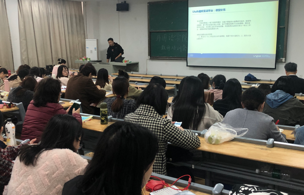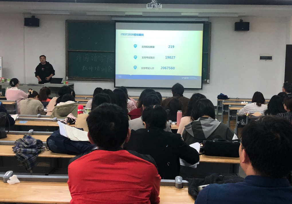 2021年3月31日周三下午两点OK138太阳集团在教一202召开全院教师培训会,由易静副教授主持,邀请外研社专业老师介绍ITEST大学外语测试与训练系统,分享外研社Unipus高校智慧教学,智慧学习,智慧测评,即就如何顺利开展混合式教学,如何迅速提升学生口语和听力能力,如何利用智能测评促进教学效果等问题进行了深入交流。