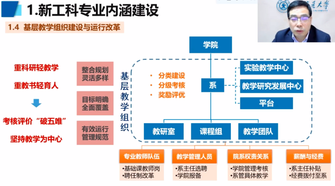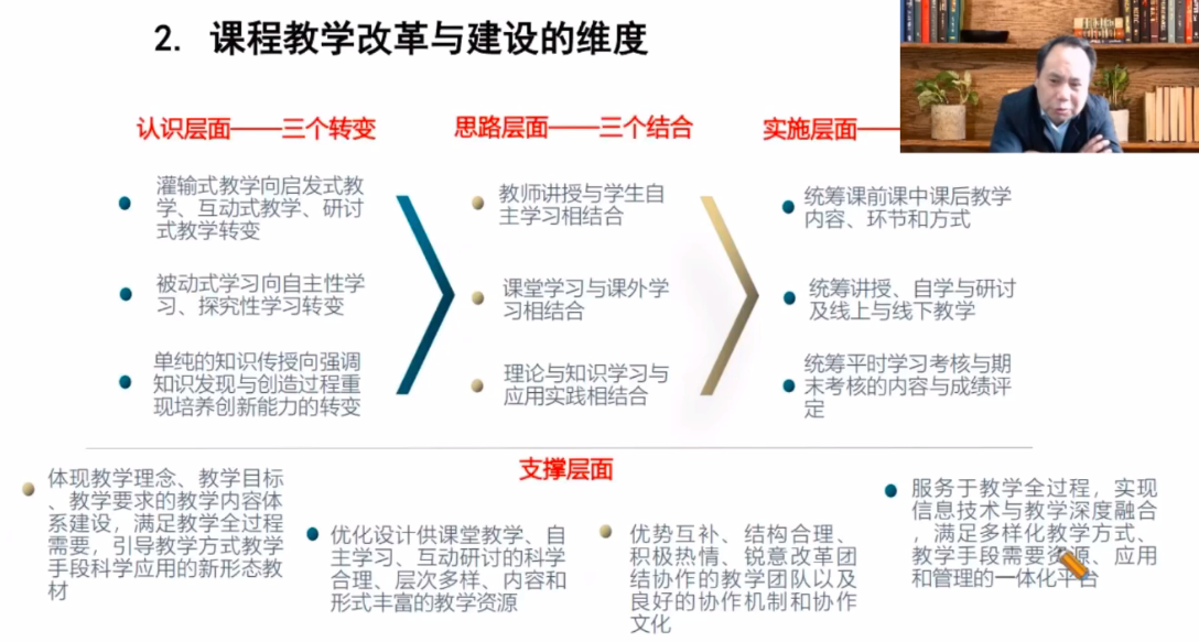 最后,我借用吴志军教授的话,从四个方面来加强自己对高质量本科教学改革的认识: