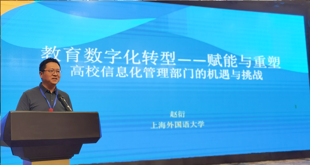 上海外国语大学信息技术中心主任赵衍教授做了题为《教育数字化转型——赋能与重塑,高校信息化管理部门的机遇与挑战》的报告。解读了教育数字化的内涵与外延,分析了教育管理、教学创新如何在数字化转型中实现“变革与增值”。