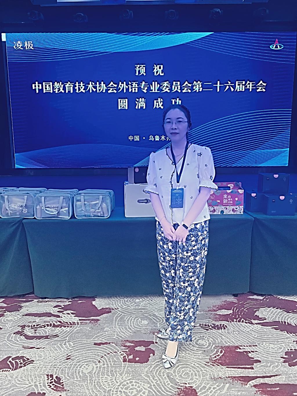 2023年7月16日至18日,中国教育技术协会外语专业委员会第26届学术年会暨人工智能赋能外语教育数字化转型研讨会在新疆乌鲁木齐召开。年会吸引了来自全国近百所院校的会员代表和企业代表共260余人出席。在学校的大力支持下,我院易静老师参加了本次年会。