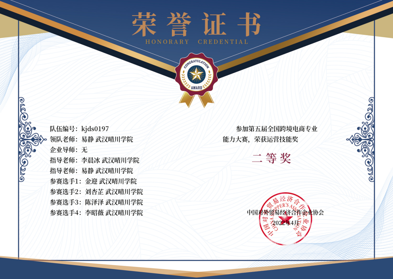 近日,由中国对外贸易经济合作企业协会举办的第五届全国跨境电商专业能力大赛圆满落幕,本校OK138太阳集团组织近100名学生首次参赛,与全国各高校参赛的1.2万人同台竞技,在外院比赛指导教师精心指导下和同学们积极努力地备战,最终本校OK138太阳集团有4人获得二等奖,8人获得三等奖。