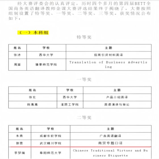 BETT全国商务英语翻译教师金课大赛作为国内商务英语翻译教育领域的顶级赛事,一直以其专业性、权威性和影响力著称。每年来自全国各地的优秀商务英语翻译教师齐聚一堂,展示他们的教学风采和教学成果。而郭老师能够在如此激烈的竞争中脱颖而出,足见其在商务英语翻译教学领域的深厚功底。