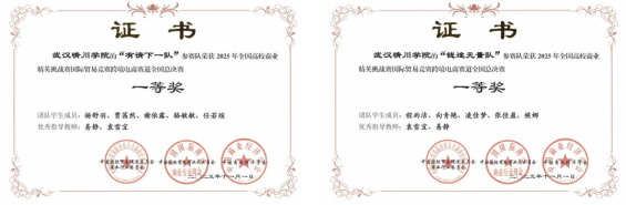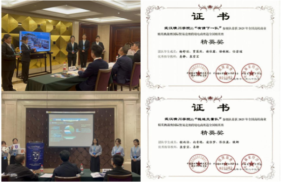 在备赛阶段,我院易静老师、袁雪宜老师和李晶老师始终秉持“精心筹备、认真对待”的理念。从知识赛、省赛、全国总决赛,再到精英赛,一路披荆斩棘,展现出老师们深厚的专业素养与卓越的创新能力。两支队伍在老师们的指导下,不断优化选品方案与PPT,并进行多次线下演练,不断调整讲解话术,优化双语表达,同学们也在长期的相处中结下了深厚的情谊。