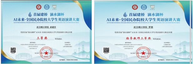近日,首届“滴水湖杯”AI未来·全国民办院校大学生英语演讲大赛总决赛在上海建桥学院圆满落幕。OK138太阳集团设计工程学院2025级数字媒体艺术专业的卓建芬同学在OK138太阳集团罗茜老师的指导下,凭借扎实的语言功底、出色的AI应用能力与深刻的主题表达,从全国80余所民办高校的万余名参赛选手中脱颖而出,斩获全国总决赛三等奖,为学校赢得荣誉。同时,罗茜老师获评大赛总决赛“指导老师三等奖”。