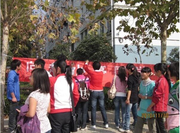 2010年11月10日中午12:30宿舍楼下,英语系1002班与1004班联合开展了一次意义深远的团日活动——向赵小亭学习。