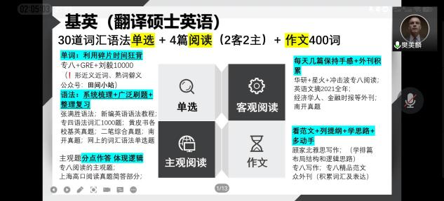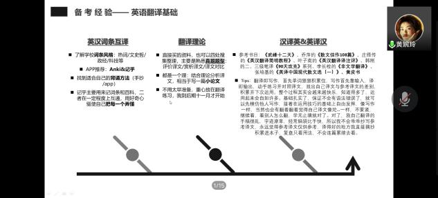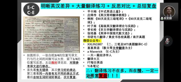在考研的备考过程中,除了要保持平和健康的心态,杨勇学长更加侧重于分享专业课知识的复习和提升,他回忆在考研复习中尤其要重视基础知识的掌握,多练题多总结。特别是翻译专业,在夯实基础的同时也要注意积累和拓展,丰富视野,多注意词条、热点、百科的涉猎与补充。