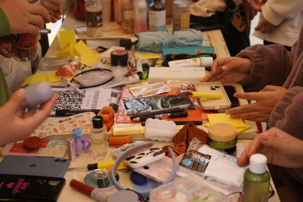 在外院同学们的支持下,小小的一张桌子摆满了各种各样的物品,让人眼花缭乱的手机壳,几个可爱的小玩偶还有不同的瓶瓶罐罐……这些小玩意都在重新找寻一个适合的有缘人。