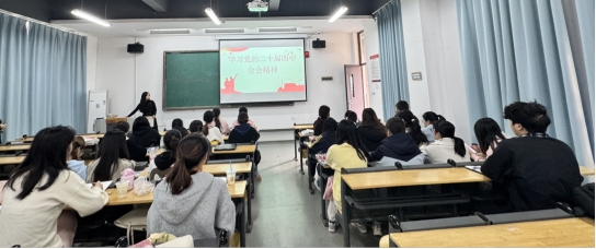 此次主题团日活动由团支书郭梦莹同学主持,活动主要分为理论讲解、核心解读、心得分享三个环节。首先,团支书通过精炼的PPT进行党的二十届四中全会精神的领学。在核心解读环节,组织委员带领大家共同学习党的二十届四中全会公报主要内容。在交流分享环节中,同学们踊跃发言、畅谈感悟,大家一致认为作为新时代青年要坚定理想信念,练就过硬本领,努力成为支持、参与和推动国家治理现代化的中坚力量,把个人成长融入时代发展洪流。