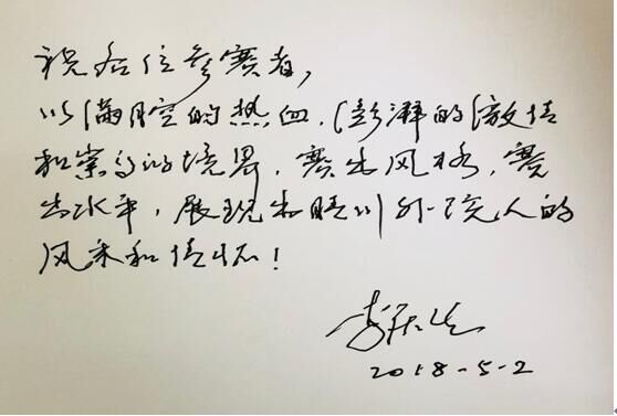 外语学院院长李庆生教授因公务繁忙,无法莅临比赛现场,同时心系比赛,特手写一段祝语,另在场师生为之鼓舞与感动。