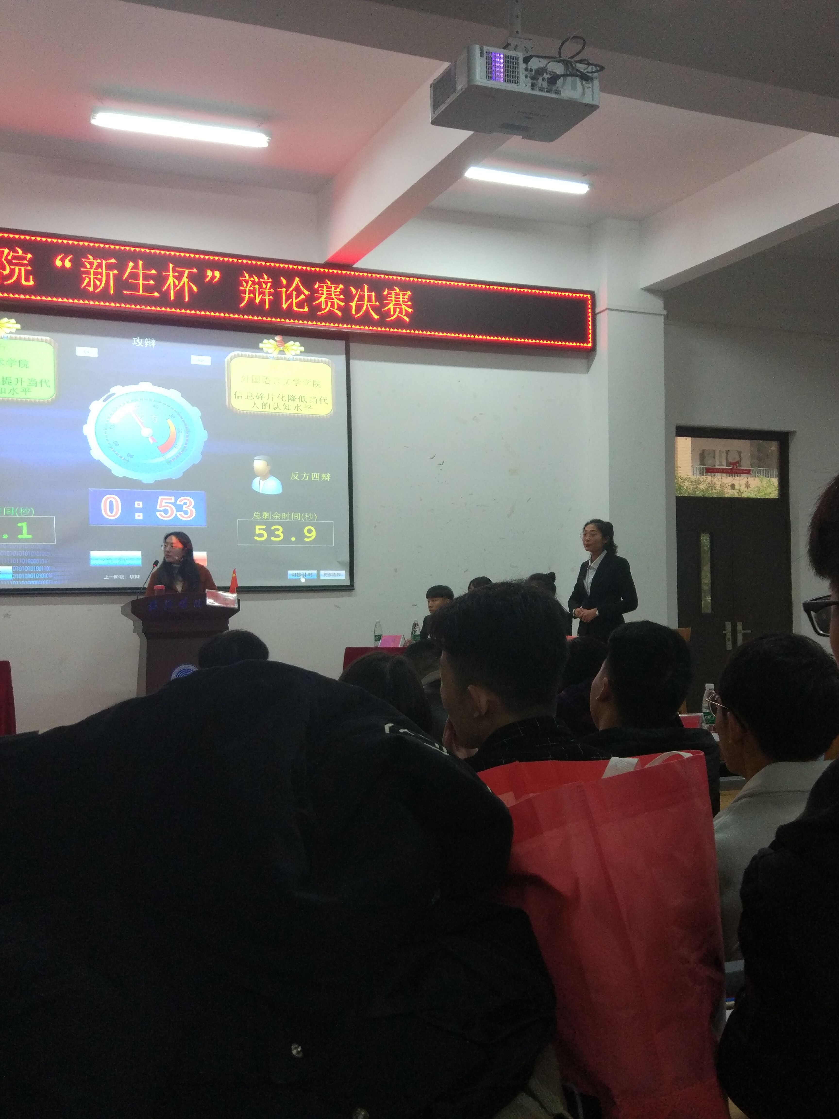 新生杯辩论赛决赛于12月5日在报告厅落下帷幕,经过激烈的角逐,传媒艺术学院荣获桂冠,外国语言文学学院取得第二名优秀成绩,第三名由电气学院获得。届时刘泽政处长亲获奖院系亲自颁奖。下面我们来看看外院选手的精彩表现吧。