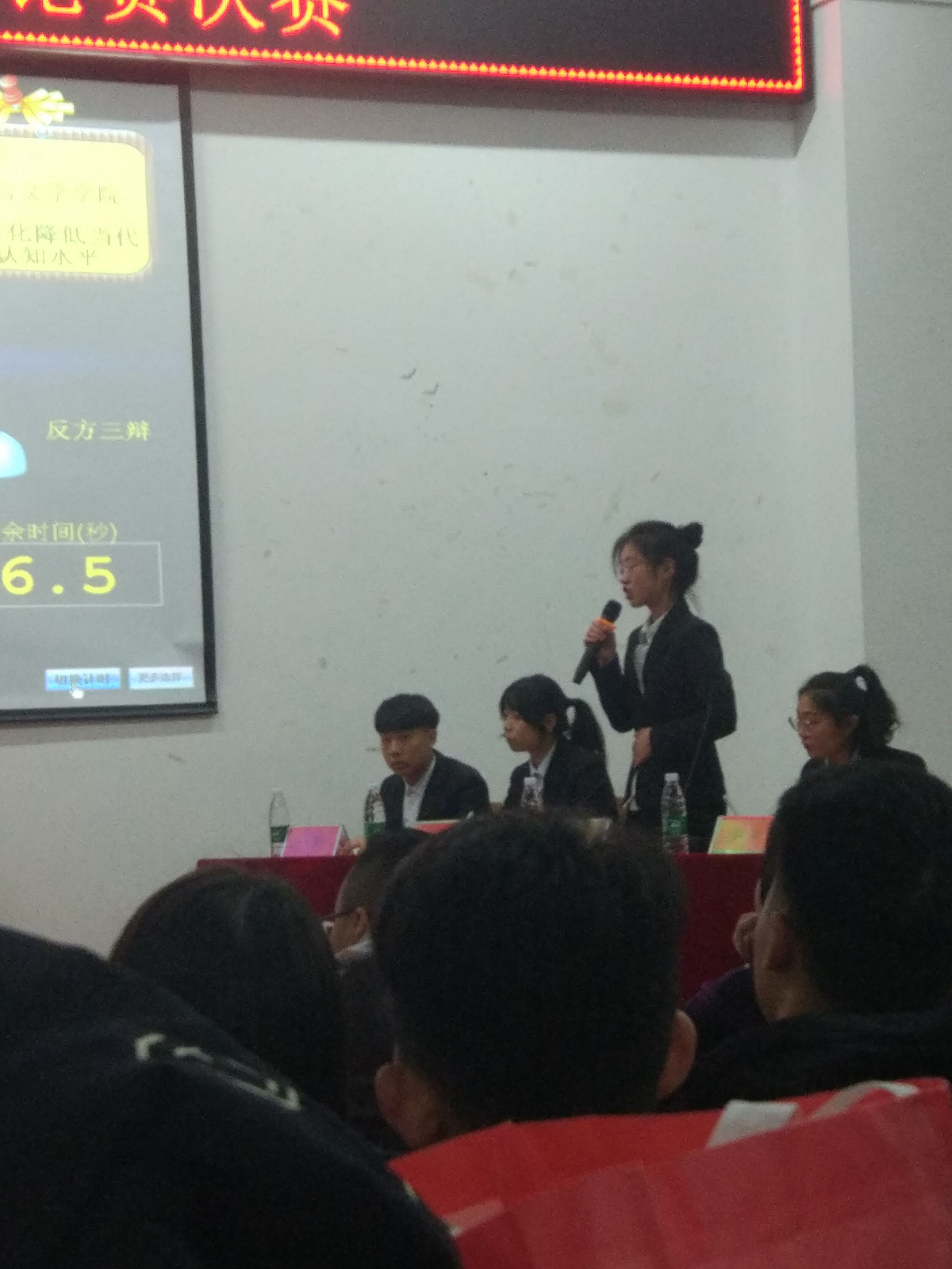 接下来二辩三辩就围绕着一辩的主题开始询问对方辩友,采取实际举例的行为,如艾宾浩斯遗忘曲线,微软公司对个体注意力的调查等等。再接下来的攻辩小结环节,外院辩手从信息碎片化弊端入手信息碎片化,技术简化了我们获得信息的步骤,降低了认知成本。却也让人容易沉溺于一种自我满足的假象之中,认为什么都懂,高估自己的知识储备。其实我们获得的碎片化信息,与其说是知识,不如说是常识。在碎片化的信息获取过程中,我们得到的往往只有事实和结果,却没有学习到真正重要的逻辑框架,而后者和我们的深度思考能力有直接关。从这两点出发,来稳固自己的观点。以及还提出了一个新事例复旦大学中文系严锋教授说:如果朱自清活在21世纪,走到荷塘边,拿出手机拍下照片,在朋友圈或微博中写下“今天的荷塘很美”就结束了,那么《荷塘月色》就没了,“片面就是这样把文学干掉”。自由辩论环节中双方据理力争,在驳对方点的时候,还不忘巩固己方观点。