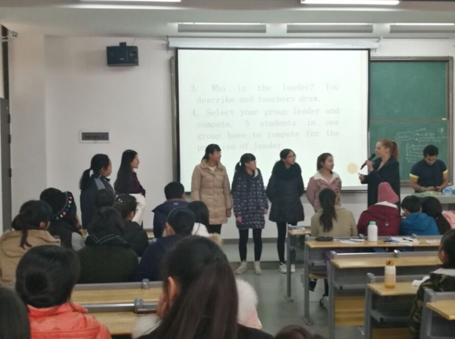 2016年11月30日,我校外语学院和英语协会共同举办的英语角活动迎来了第二期,由外语学院的肖婧老师和常驻英语角的两位优秀外教Ewelina和Khalid共同主持,吸引了来自全校各专业的学生们踊跃参加。 此次活动为Leadership为主题,内容丰富多彩。老师们带领大家以趣味单词造句游戏开场,紧接着“你说我画”、竞选leader、猜词大比拼和‘follow the leader’等有趣的活动有序进行。略显害羞的同学们在热情洋溢的老师们和英语协会的干事们鼓励下,以团队的形式自告奋勇完成各项游戏和活动,结合“说”与“做”,享受英语学习的快乐。