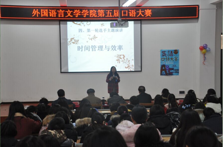 2016年12月14日下午13:30,外院第五届口语大赛决赛于综二105学术报告厅拉开序幕。出席本次大赛的有任晓晋副院长,张黎副院长,胡孝申、胡晓红、何康民三位教授,外院分团委书记张越老师和辅导员周红。