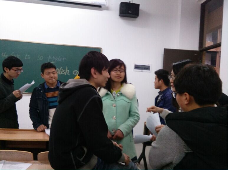 本次活动于下午5点开始,我院英专教师肖婧老师准备了学生们喜闻乐见的诸多话题,同时挑选了三名口语优秀的学生助教协助每个小组展开讨论。网络热词的英文表达,如高颜值、收视率、高人气、剧透等,让学生们从英语上紧跟潮流;另外,肖老师引导学生们将国产剧和韩剧从剧情、制作、宣传、演员、配乐等多方面进行对比,极大地激起同学们的兴趣,同时深入思考电视剧所带来的影响力。在肖老师和三位助教的带动下,同学们畅所欲言,热烈兴奋地讨论自己的偶像;部分同学敞开心扉,分享了自己的情感经历和憧憬;肖老师还和同学们一起讨论情感观念,以期学生们能拥有健康、积极的爱情观和价值观。开放、自由的气氛感染了每一位参与的学生。