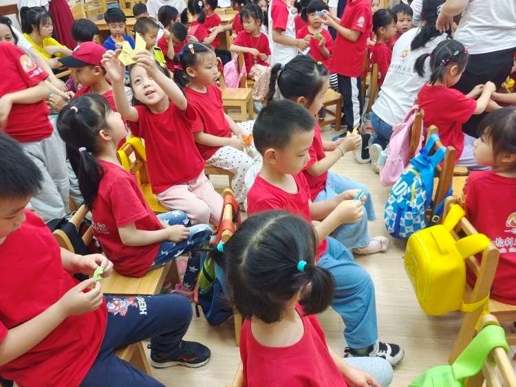 学前学生为小朋友们准备了精美折纸小礼物,小朋友们可开心啦!