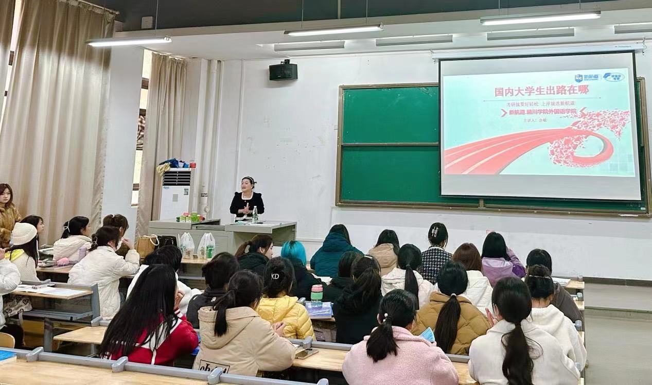 在讲座中,余敏首先强调了大学生就业难的问题。她表示,随着高等教育的普及,大学生面临着越来越大的就业压力。接着从“考研、留学、考公、就业”四个方向给同学们进行了分析。