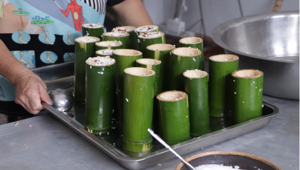 装满食材的竹筒被平稳放置在火候恰到好处的火源上,慢慢烘烤。随着温度逐渐攀升,竹筒发出滋滋的美妙声响,缕缕青烟袅袅升起,竹子的天然清香与食材的诱人香气相互交融,弥漫于整个空间。经过耐心且充满期待的等待,竹筒饭终于完美出炉!当竹筒被开启的瞬间,馥郁的香气扑鼻而来,令人垂涎三尺。米饭颗粒饱满,充分吸收了竹子的淡雅清香和食材的鲜美滋味,品尝一口,唇齿留香,令人陶醉其中。