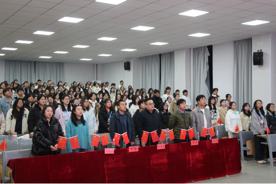 接着主持人宣布全体起立奏唱国歌和团歌。