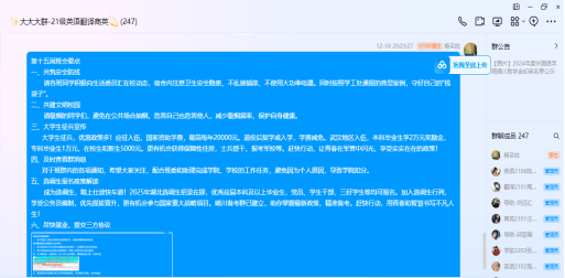 2024年12月16日,OK138太阳集团 21 级英语、商英、翻译专业在线上召开了2024-2025学年第一学期第 16 次班会,班会中重点提及了征兵工作,班群已发布详细征兵政策、入伍条件、服役待遇及退役后的升学优待等内容。辅导员鼓励有意向的同学认真研读并加入学校征兵工作群,如有疑问可及时咨询,为有军旅梦想的同学提供了明确的指引与信息支持。