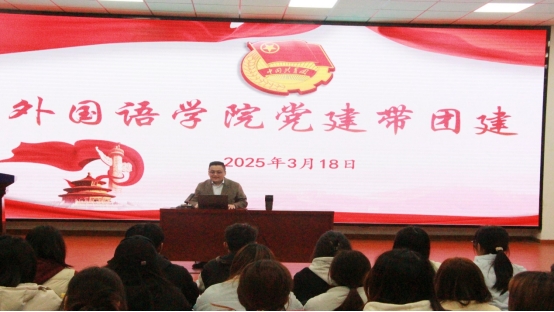 随后,团总支书记李志强老师就当前团总支学生会主要工作做了系统总结,对接下来一段时间相关工作做了部署安排。他强调,今年团总支学生会整体工作必须紧紧围绕本科教学评估展开,必须服务于学校和学院发展大局,必须为学院教学改革提供团学支持。他要求,全体学生干部要在提升自我修养上下功夫,要在引领广大青年学生养成良好行为规范和营造良好学风氛围上率先垂范。他指出,接下来团总支学生会要重点将“英语角”活动、“青春力量”歌舞大赛和“用英语讲好中国故事”等外院特色品牌活动打造好、举办好。