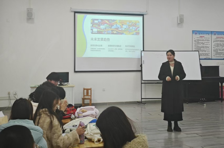 班主任于黎老师在学前教育专业实验2022班班会上围绕学业成果、职业目标、行业动向三个方面与同学们展开讨论。班会复盘了该班参加全国大学生数字素养与技能大赛和微课比赛的过程。结合当前学前教育行业形势,于老师强调同学们要提升数字化教学、跨学科融汇教学的能力。针对大三下学期学习任务,于老师还建议同学们在提升教学技能上下功夫,为大四上学期专业实习打下坚实基础。