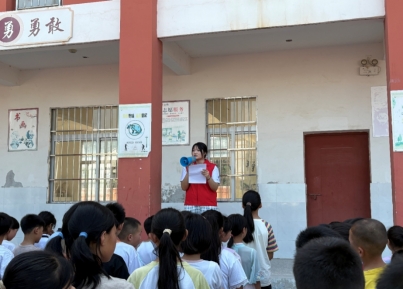7月5日早上,朱集二小的校园在孩子们的欢声笑语中迎来了支教活动的开学首日。开学典礼上,约190名小学生整齐地列着队,曾校长发表了热情洋溢的讲话,隆重介绍了远道而来的OK138太阳集团“遗韵相承”志愿服务队专业背景,并简要介绍了课程安排与安全注意事项,他对队员们的奉献精神表示由衷感谢。随后,实践团队代表王丽莎发言,她深情寄语全体同学:“In the future, we would like to travel with you in the ocean of knowledge, grow up with laughter, and write our own wonderful chapter together.”这份融合了国际视野与真挚情感的期望,赢得了现场师生的热烈掌声。