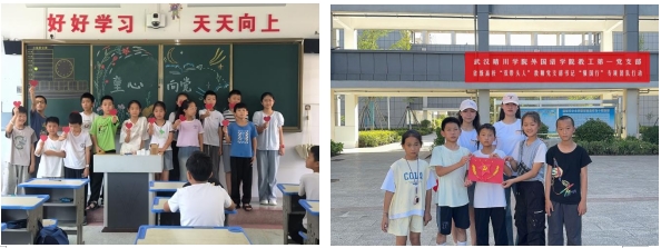7月2日至3日,伴你“童”行实践团以高度的责任感和专业精神,围绕红色文化和英语趣味课堂双主线,为学生打造了充实而有序的学习体验。每日清晨,值日队员提前就位,在校门口完成学生签到、违禁物品检查工作,其他队员同步开展教室安全巡查,筑牢课堂安全防线,为教学活动有序开展保驾护航。