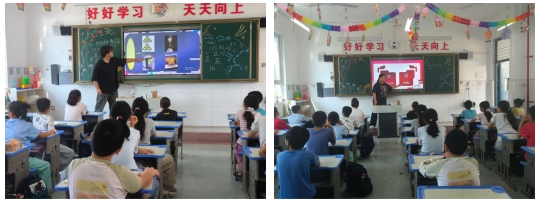 上午8时,英语课堂率先开启,实践团成员冯仰通以“颜色”为主题,通过视频导入、分组竞赛、情景对话等形式,搭配“读字颜色大挑战”互动游戏,充分调动学生积极性,课堂氛围热烈。随后,队员熊字月老师带来手势舞教学,将英文歌曲与舞蹈动作有机结合,通过全班合唱、小组分练的形式,让学生在欢快的节奏中轻松掌握动作中包含的基础英文词汇。