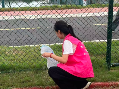 活动中,志愿者们分工明确、配合默契。有的用扫帚将落叶聚拢成堆,有的细致捡拾草丛和跑道边缘的塑料瓶、纸屑等杂物。经过一个多小时的辛勤劳动,操场区域的落叶和杂物被清理得干干净净,整体环境焕然一新,为师生的体育锻炼与休闲活动营造了更加舒适、安全的空间。