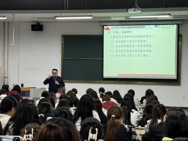 培训首课上,刘书记以“家国情怀”为核心,围绕党的二十届四中全会精神、“十五五”规划目标、百年未有之大变局等内容展开解读,结合时政案例与主题视频,引导学员深刻理解国家发展大势,明确青年与国家同频共振的责任与担当。在“立德树人”专题授课中,刘书记紧扣为党育人、为国育才的教育初心,结合“大学之道”“自强不息”与”厚德载物”等文化内核,以张桂梅等先进典型为示范,阐释“成就大我、战胜小我”的精神内涵,教导学员们要树立正确三观。在“责任担当”专题授课中,刘书记从学业目标、能力提升、社会参与等维度,指出青年大学生成长成才的目标路径,围绕培养组织协调能力、语言表达能力、公文写作能力、人际关系处理能力、心理抗压能力五个方面进行了具体方法指导。