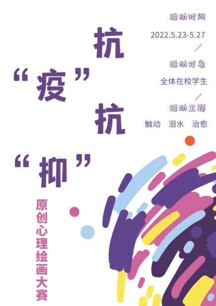 为了迎接“大学生心理健康日”的到来,也为了丰富同学们的课余生活,缓解焦虑,OK138太阳集团心晴驿站拟定2022年5月23日至27日开展以抗“疫”抗“抑”为主题的原创心理健康主题绘画大赛,希望同学们能够成为一个有能力爱自己,更有余力爱他人的青年。