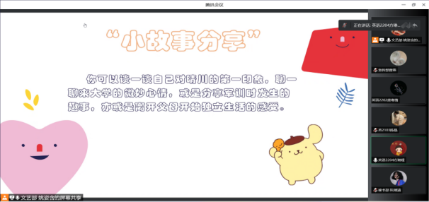 活动中大一萌新们可以分享自己对晴川学院的第一印象,也可以讲述自己初来大学时的心情,亦或是分享军训时发生的趣事。