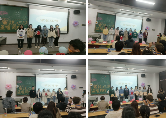 比赛落下帷幕,经工作人员的统计,投我你就队带来的《心诚舍近》荣获特等奖,由何蕴哲老师为之颁奖;你有惊喜瞒着朕队不队带来的《不再沉默》荣获一等奖,由王银燕老师为之颁奖;你不对我队带来的《宿舍温情》荣获二等奖,由王琦老师为之颁奖;你说的都队演绎的《宿舍二三事》荣获三等奖,由杨悦老师为之颁奖,祝贺以上获奖参赛队伍。