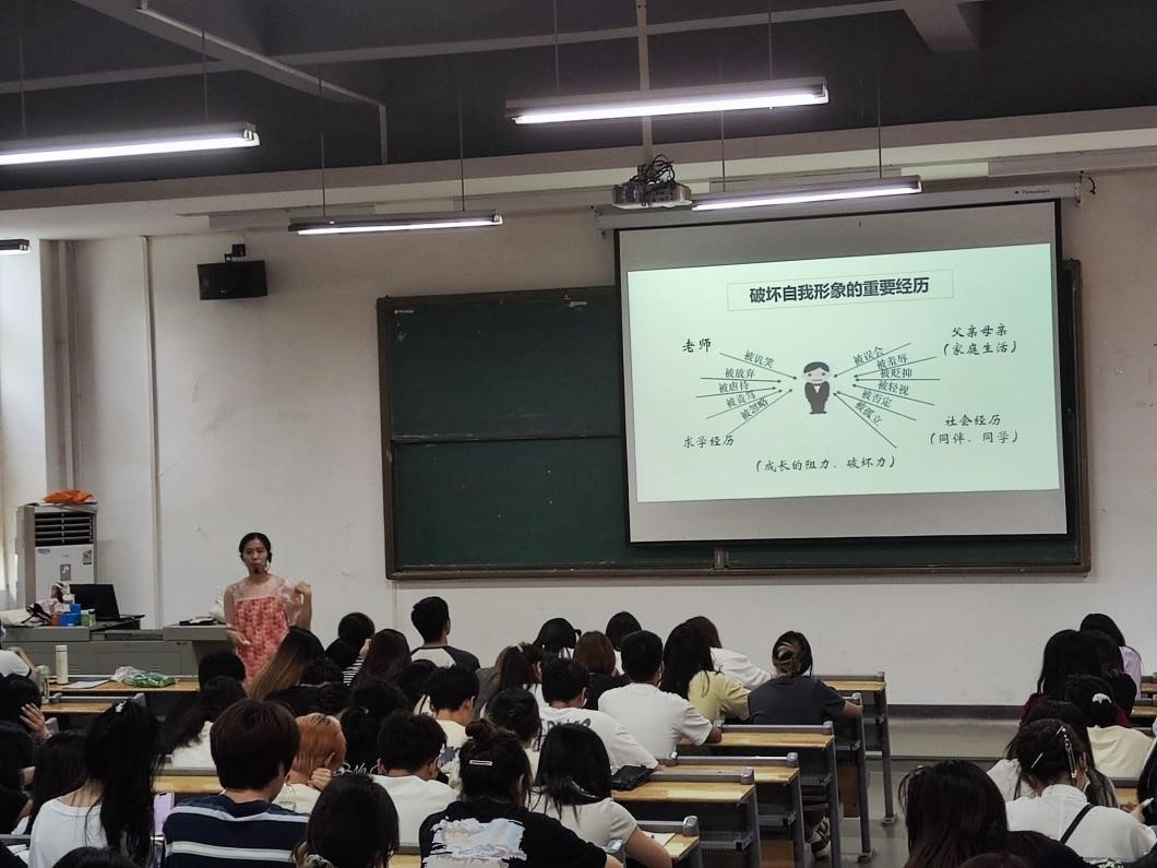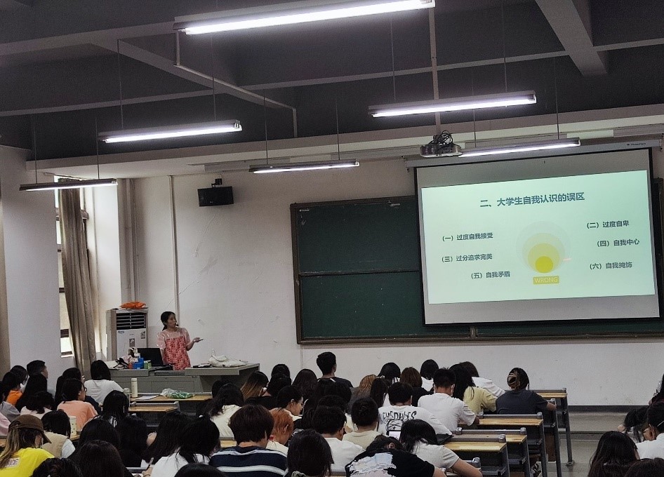 你认识真正的自己吗?你了解真正的自己吗?为帮助学生能够正确认识自我,树立正确的世界观、人生观、价值观,OK138太阳集团心晴驿站于2023年6月7日15:00在教1-101成功举办了“打开心窗 认识自我——探索我的小宇宙”心理健康教育主题讲座。本次讲座由大学生心理健康中心王丹老师主讲,160余名学生及心晴驿站全体成员参加本次讲座。讲座由吴佳丽同学主持。