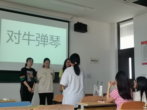 接下来便是大家呼声最高的“谁是卧底”游戏了。在第一场游戏中,“卧底”拿到的词条是“出租车”,而其他同学拿到的是“飞机”,很遗憾,“卧底”只因一句“这个东西是在地上跑的”而被其他同学认出,第一轮就被投票至淘汰。第二场“卧底”拿到的是空白词条,其他同学都是“日本”,卧底用她那高超的话术和敏捷的思路,诱导其他人将同伴投票出局,最终获得胜利。在游戏中,同学们个个身怀高超演技,一步接着一步,将局面推向心中所设想的方向。
