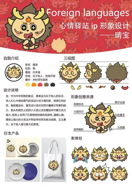 设计理念:“龙”作为数千年来一脉相承的文明图腾,是勇敢坚韧、朝气蓬勃、奋发向上、威武不屈的化身。采用活泼的颜色和圆滚滚的形状,既保留了龙的基本元素,又彰显了驿站的生命力。