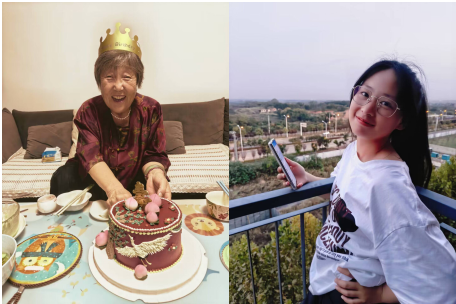 左:和家里人在一起过生日,奶奶的笑容此刻像一个孩童般,开心快乐、无忧无虑。