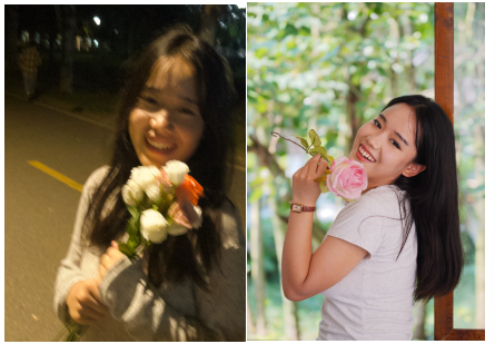 右:在学校课间出来看风景时,朋友抓拍的一张微笑图片。