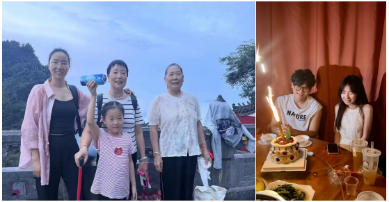 左:和家人们一起去爬山,难得的家庭聚会让我感受到温馨和愉快。