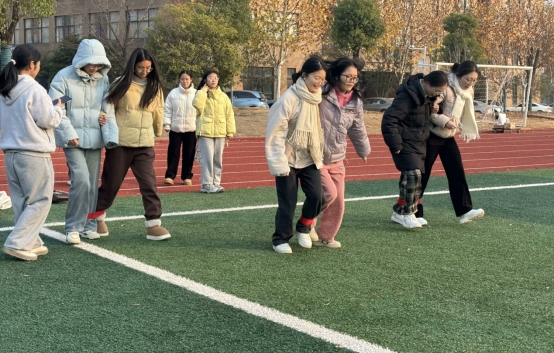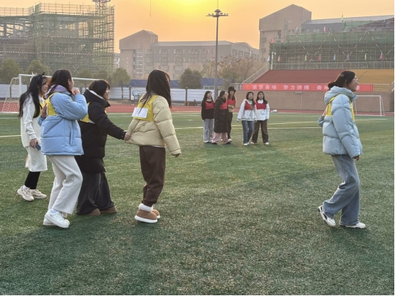 下一个是非常考验与同伴的默契和协作能力的游戏项目——两人三足。该项目强调的是团队成员之间的默契配合和协作。每个参与者都需要与搭档保持同步,否则可能会导致整个团队的进度受到影响。参与者在比赛过程中可以感受到极大的乐趣和成就感。这种体验能够激发同学们参与活动的积极性,增强团队的凝聚力。