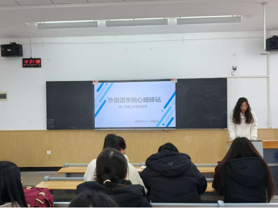 最后,吴佳丽站长对2025学年心晴驿站的工作内容作了简要介绍。本学期驿站的工作安排相对精简,主要规划了四项大型活动,讲座及团辅若干。各项活动的具体开展形式、时间与流程,将依据实际情况适时调整。