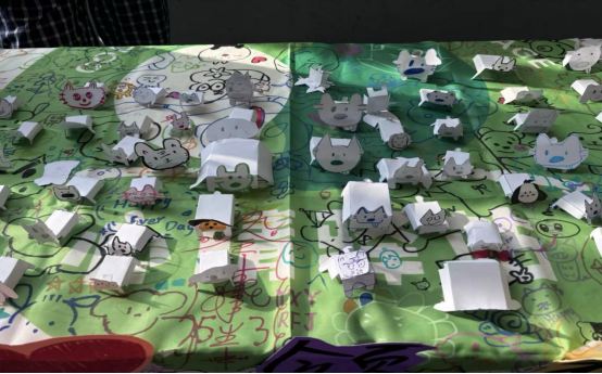 宣讲结束后,同学们在爱心领养处的长桌前排队领取折纸小狗。每一只“小狗”都独一无二:有的画着温顺的表情,白色卡纸剪成的毛发蓬松柔软,用胶水固定在小支架上,能稳稳“坐”在书桌上;有的用棕色卡纸折成,眼睛处贴着亮晶晶的贴纸,活泼的模样仿佛随时会摇起尾巴。同学们认真挑选着,有的轻轻拿起仔细端详,有的和同伴小声讨论哪一只最可爱——很快,这些承载着心意的纸质小狗便找到了自己的主人。