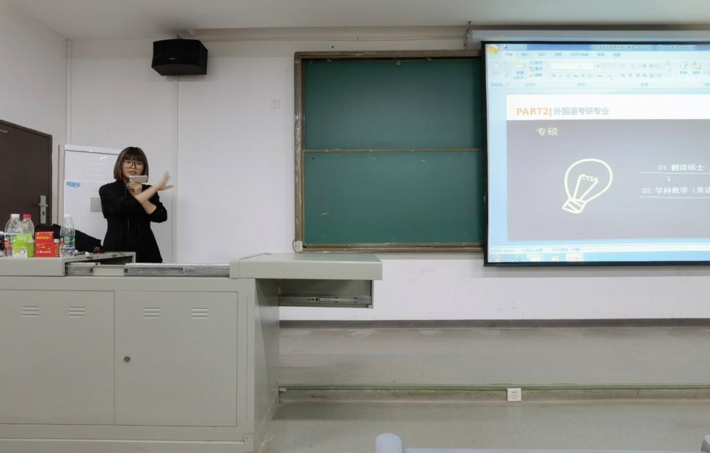 校外专家周婧老师向同学们介绍了外语考研涉及的专业和招生院校,解析了全国各个地区院校的研究方向和考情,并根据不同地区院校的报考难度和报录比为同学们推荐了不同层次的考研院校,鼓励同学们根据自身能力和复习情况选择报考方向和院校。随后,周老师为同学们提供了公共课与专业课的复习备考建议,详细介绍了外语考研涉及到的各专业方向的备考要求、部分高校的复习侧重点以及考研的时间安排。