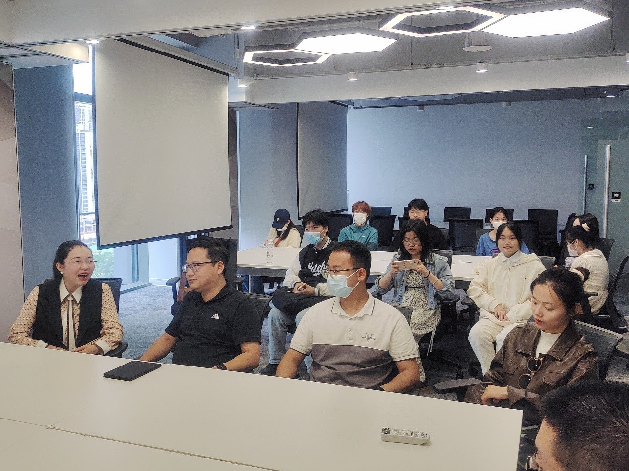 到达猿辅导后,师生一行参观了公司整洁明亮的员工办公区、在线授课区和用餐休闲区,负责人对所在光谷新发展国际中心的猿辅导公司人员规模进行了详细介绍。