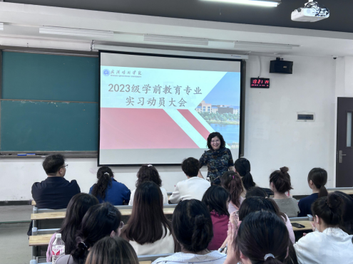 仪式伊始,满丛英老师、范丹红教授、余恒老师和孙灵灵老师开展了关于2023级学前教育专业的实习动员大会。会上,他们详细介绍了学校对2023级实习工作的安排和具体要求,一致强调了实习期间掌握沟通技巧的关键性。