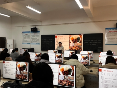 展示中,同学们精准还原了各国商务礼仪的核心细节:有的演示了东南亚国家商务会面的合十礼姿势区分,有的详解了中东国家商务往来的馈赠禁忌,还有的模拟了欧洲国家商务谈判的沟通礼仪;不少展示还注重对应国家的文化元素呈现,如肯尼亚的传统问候语、墨西哥商务午餐的座位礼仪、巴西会议中的咖啡文化等,使礼仪规范依托于具体文化语境,更显真实可感。