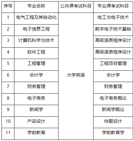 1.普通考生。考试科目为公共课和专业课各1门。公共课科目为英语,实行全省统一命题、统一考试、统一评卷。专业课科目由学校自主确定并封闭命题、阅卷。考试要求和参考教材详见附件,考试科目见下表: