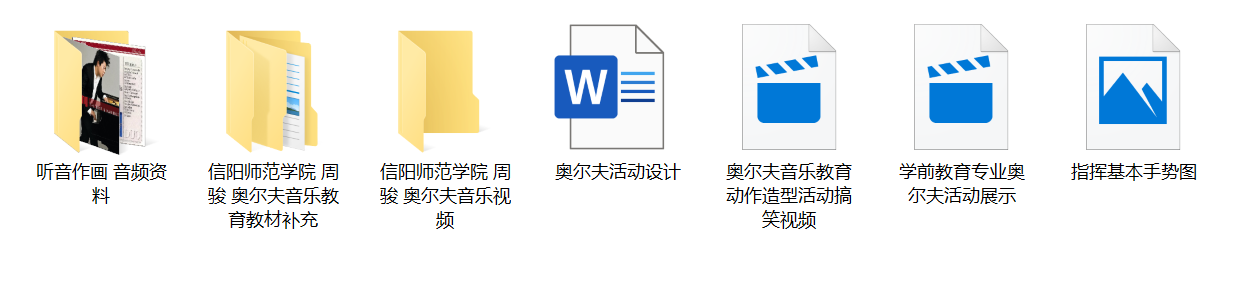 该课程的内容设计是,以复旦大学出版社出版,由方少萌主编的《奥尔夫音乐教学法使用教材》为主要学习框架,教材中将奥尔夫音乐教育分为五个章节,分别是奥尔夫音乐教育原理、奥尔夫嗓音造型、奥尔夫动作造型、奥尔夫器乐造型、奥尔夫综合课程,在教材的五个章节基础上,教师又补充了奥尔夫音乐欣赏课与奥尔夫戏剧教育两个内容;在活动案例的部分,除教材上给出的音乐教学活动方案,教师也根据授课班级学生的实际需求与实际状况另设计音乐教育活动引导和带领学生参与、体验、实施和针对性总结梳理;在教学资源的部分,一方面时刻关注音乐教育与音乐活动的及时更新、社会时效性与本土性,将从微信、微博等网络资源上关注到的有效信息及时分享给学生,作对应的知识点梳理,一方面从其他奥尔夫课程体系中进行借鉴、完善与补充,如中国大学慕课的资源库中的信阳师范学院周骏教师的奥尔夫音乐课程。