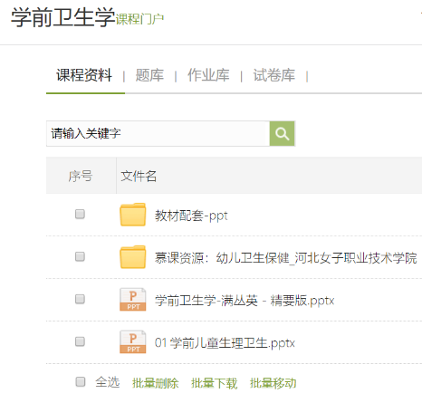 (5)资源管理-慕课资源:下载相应的视频和PPT资料,对学生公开不设限,可以弥补网络不畅和学生的特殊情况。