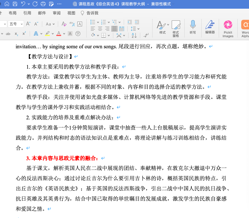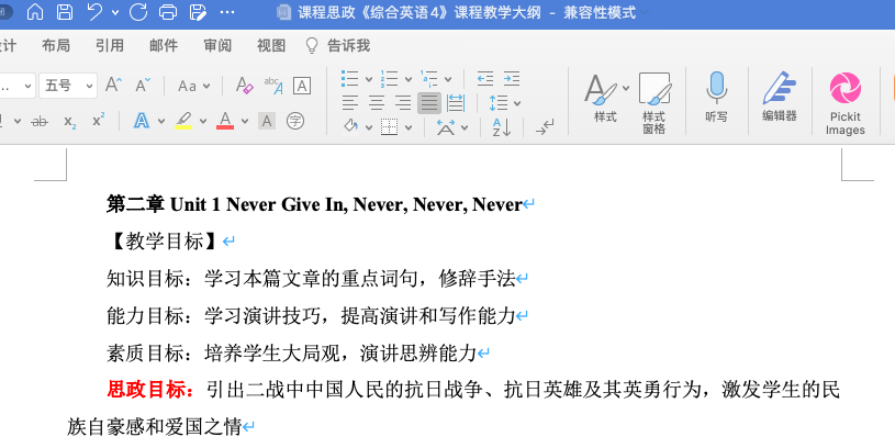 《综合英语4》中许多文章十分经典,体现出人类普遍认同的世界观、价值观、人生观和思维模式。在教学目标中明确思政目标,在课程设计中科学选择经典作品,向学生传递亲情、友情、爱情之间的关系,使其理解创新和合作的重要性,培养学生坚持、自信、积极乐观的良好品格。在语言和外国文化的学习中培养学生的爱国主义情怀和社会主义核心价值观。